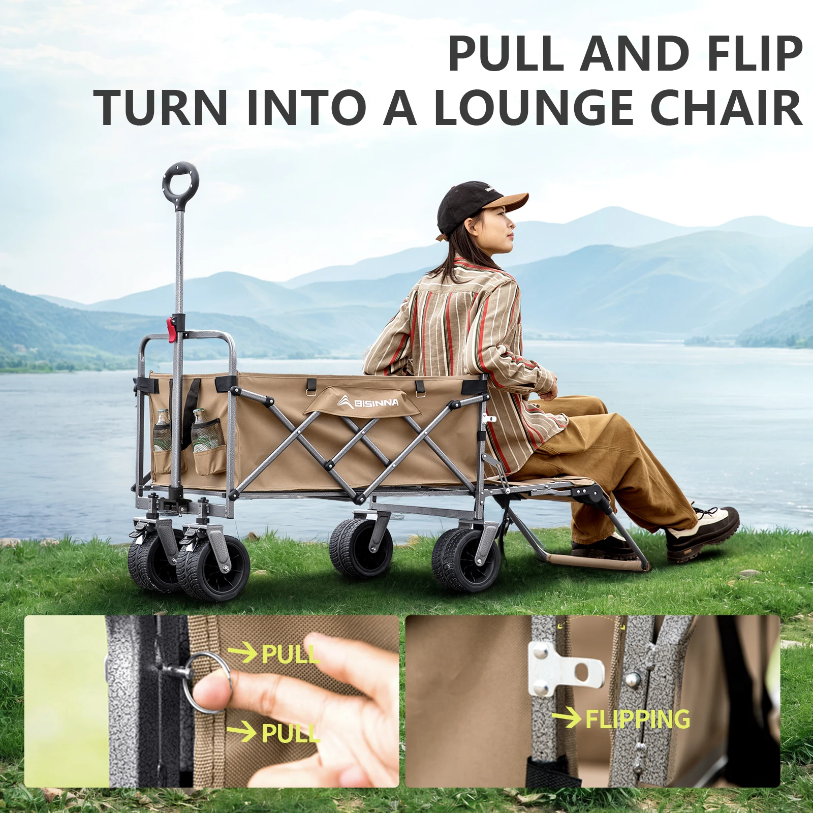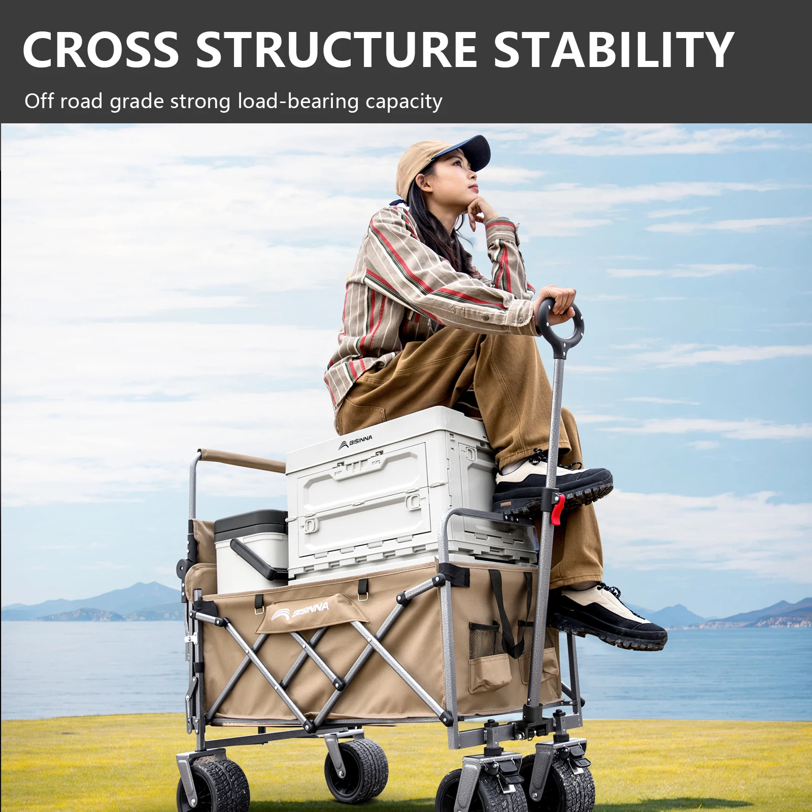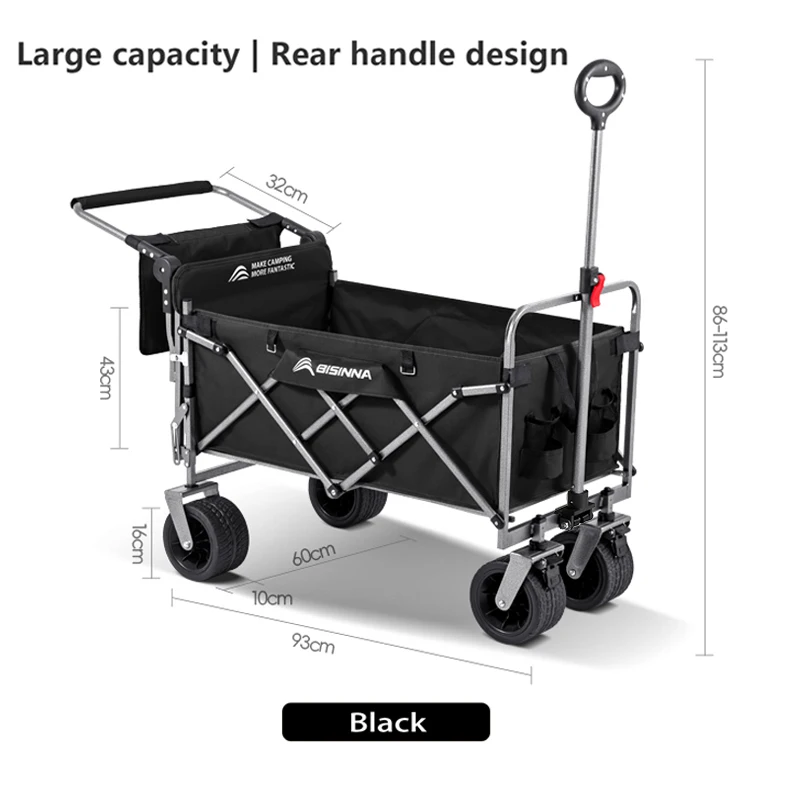 This folding camping utility wagon is designed for convenience and durability in any outdoor setting.